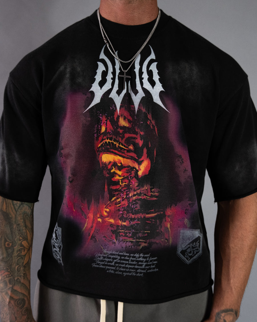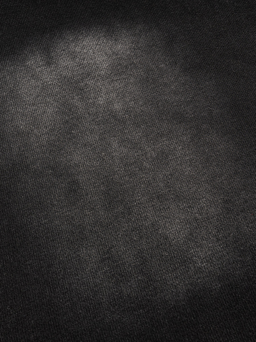MORS FLAMMA 'LIMITED' SUNFADED FRENCH TERRY RAW HEM TEE IN BURNT BLACK